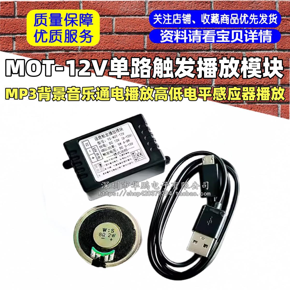 シングルチャンネルトリガー再生モジュール MP3 バックグラウンドミュージック電源オン再生高レベルおよび低レベルセンサー再生 MOT-12V