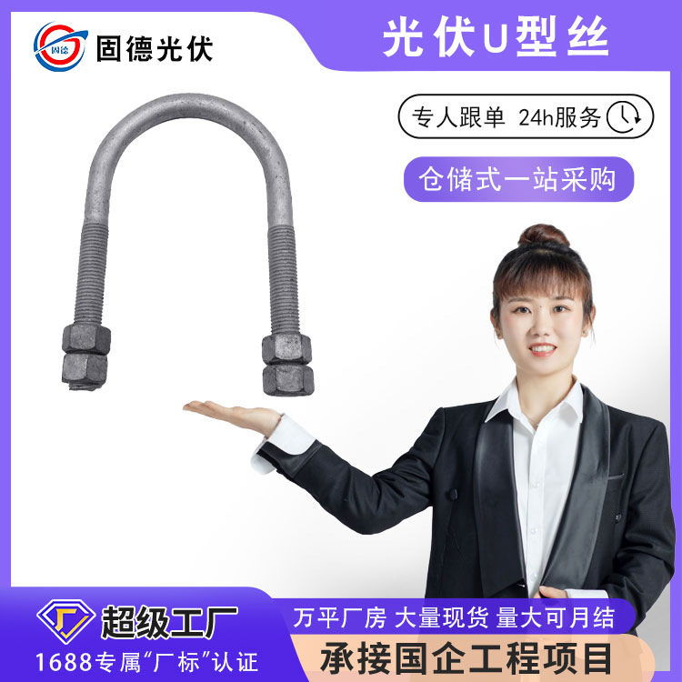 カスタムメイドの太陽光発電用U型ボルト、亜鉛メッキプレート、U型ワイヤー、炭素鋼U型スクリュー
