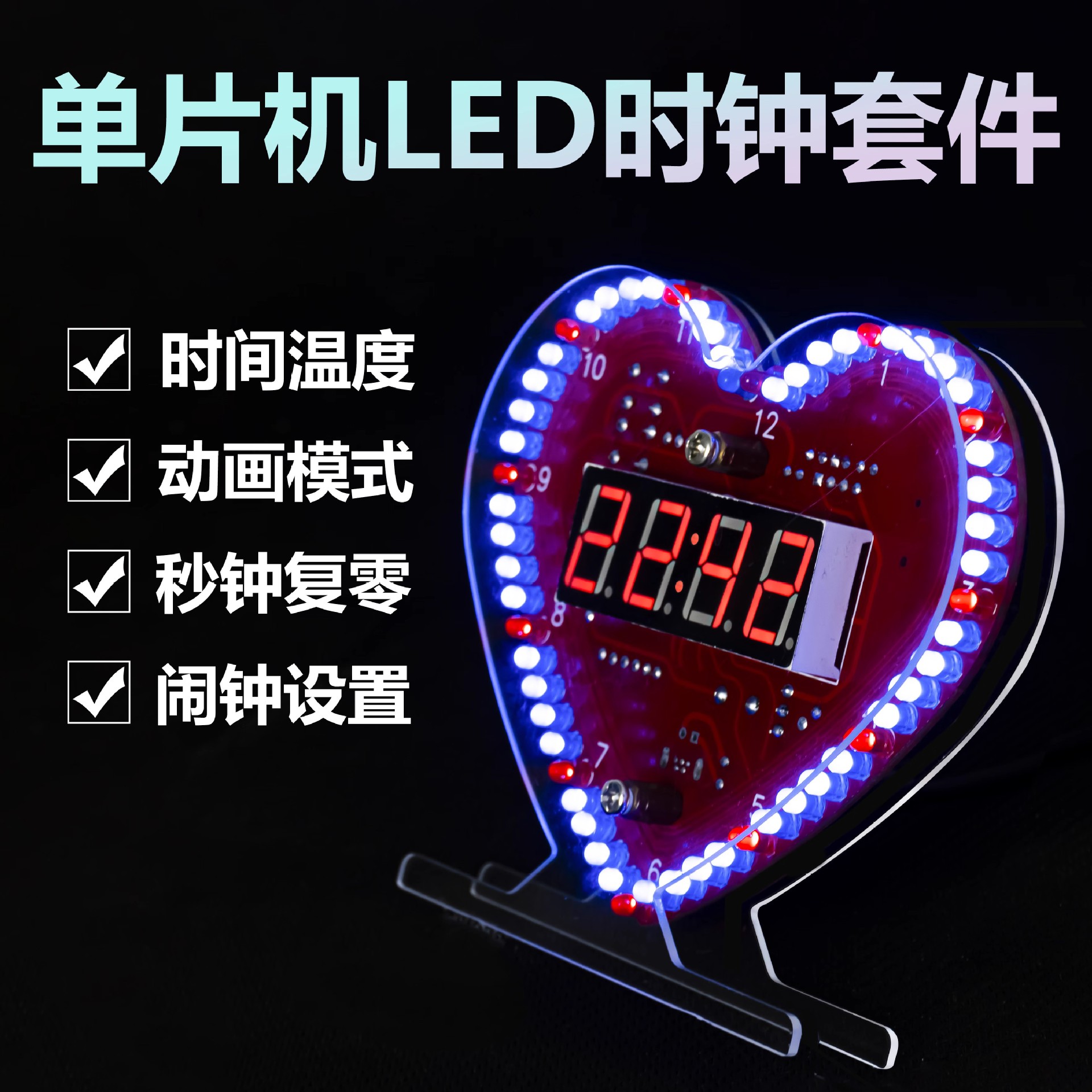 ハート型回転LEDデジタル時計 温度表示 多彩なアニメーション DIY電子キット 溶接 TJ-56-513B