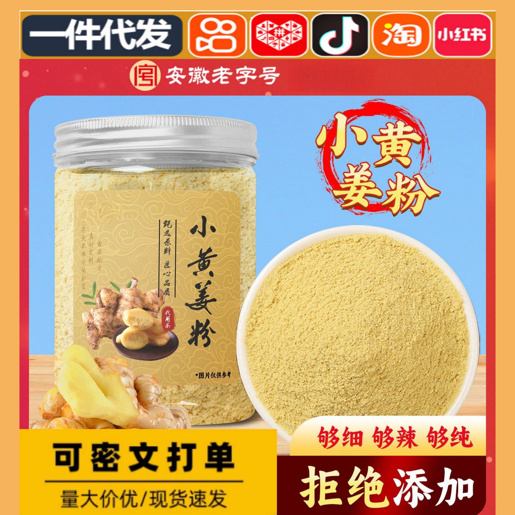 ターメリックパウダー缶詰純粋な生姜パウダー無添加純粋な天然繊細な雲南本物の純粋な乾燥生姜パウダー卸売配送