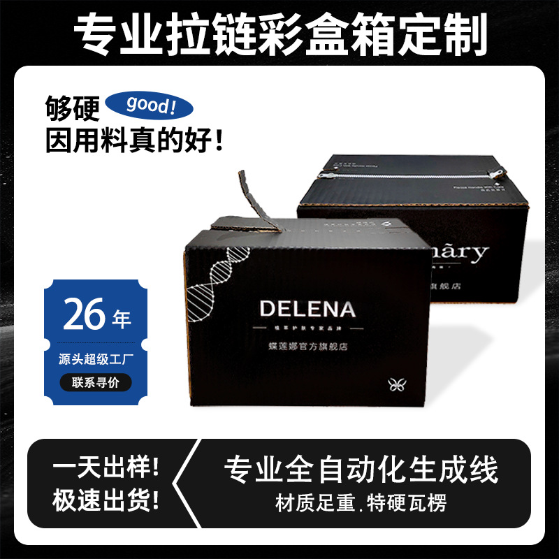 ジッパーカラー箱包装箱高級uv印刷礼箱クロスボーダー平口カラー箱外包装物流宅配箱