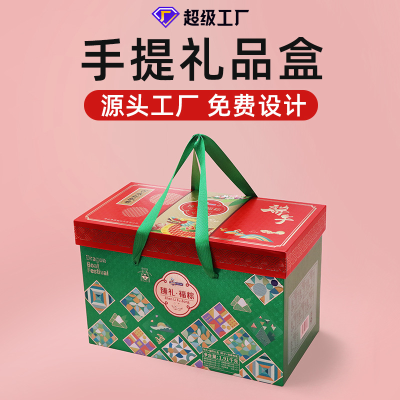 端午の節句の国風のちまきの包装箱はお祝いの赤い箔押しの段ボールの段ボールを印刷してちまきの礼箱を持っている
