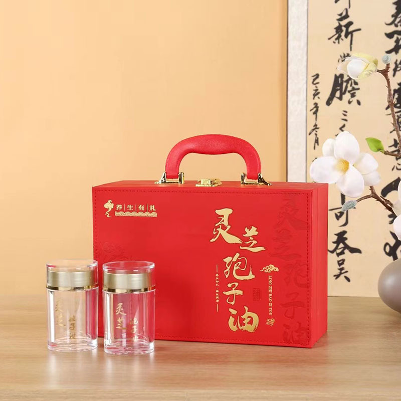 新しい赤い霊芝の胞子油の包装の箱のプレゼントの箱の胞子油の皮の箱のカプセルのギフトの箱の卸売りは注文します。