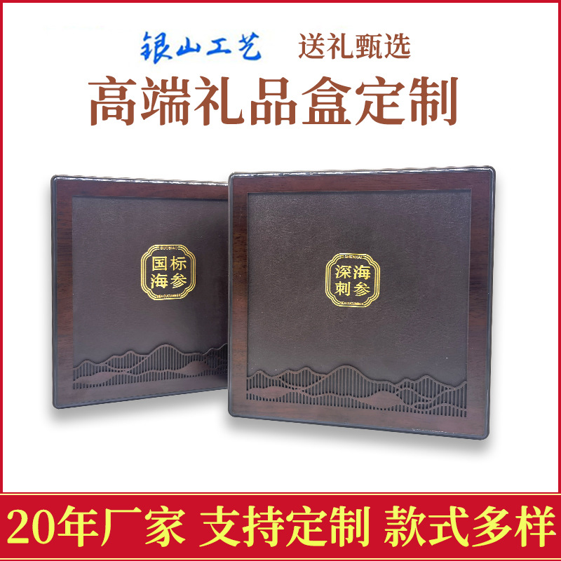 源工場カスタム卸売り蓋彫刻皮革ナマコギフトボックス包装高級滋補健康食品空箱