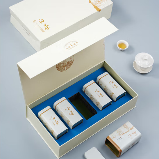 鉄缶白茶包装箱とeva内張りカバー本型ギフトボックスナマコ健康食品天地蓋箱印ロゴ