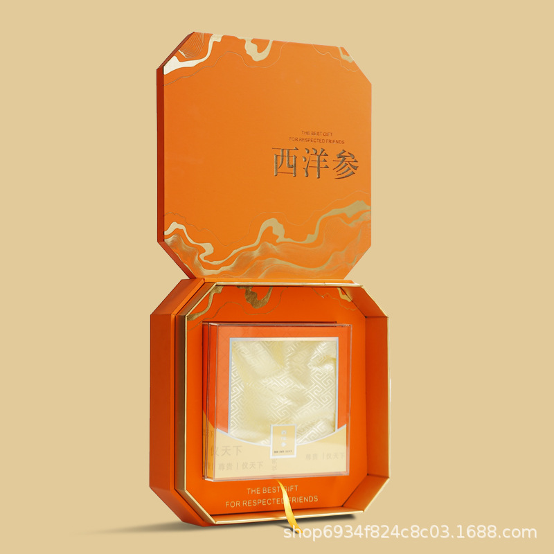 西洋参礼箱100g包装箱空箱高級高麗参お土産箱花旗参八角形