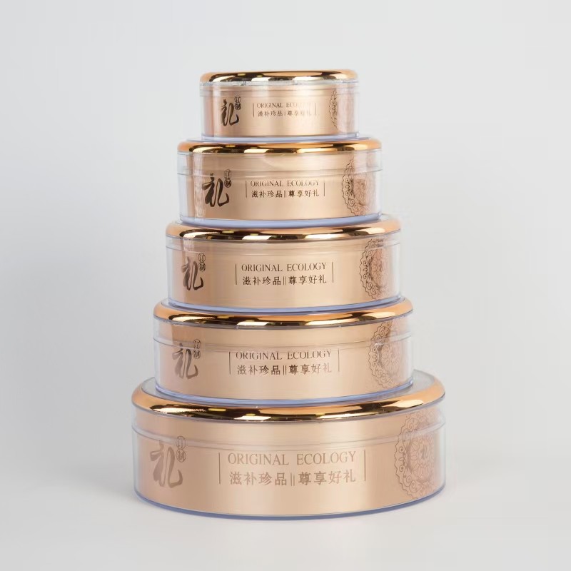 新型アクリル金辺無ボタン丸箱通用燕巣虫草石gok西洋参鹿茸ナマコ透明内胆
