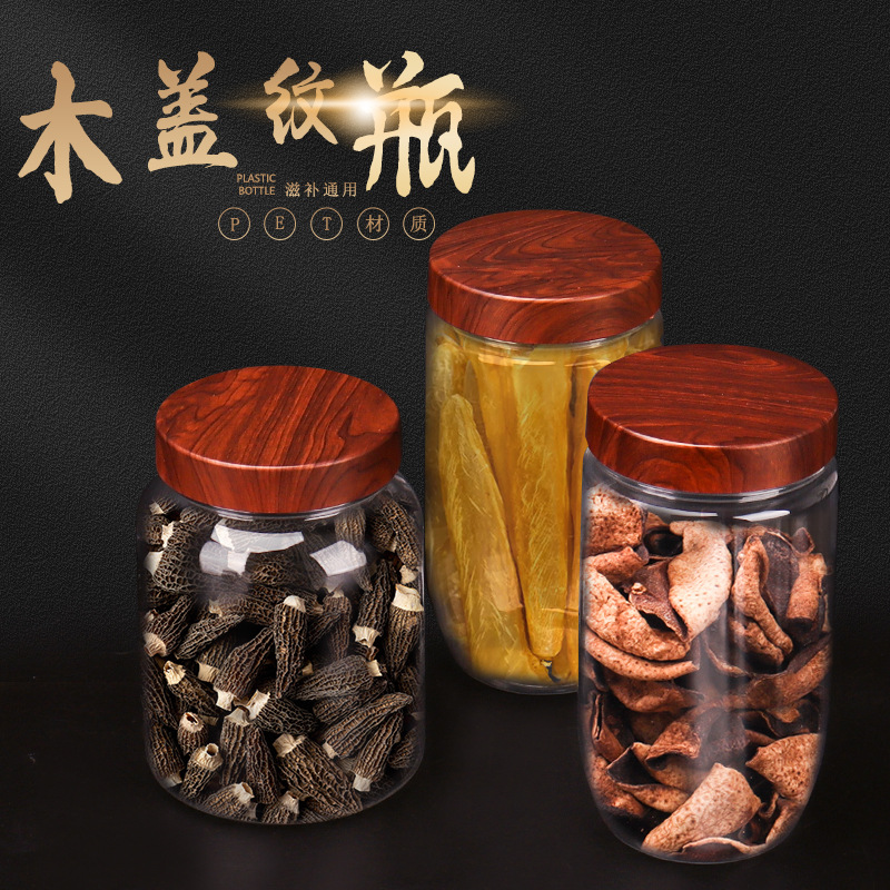 ユニバーサル食品グレードの透明なラウンド PET 包装密封瓶木目調蓋収納ボックスプラスチック栄養健康製品ボトル