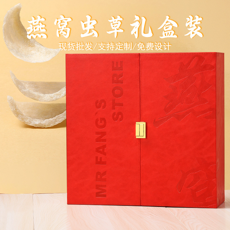 中国節燕窩包装箱高級ギフトボックス西洋参虫草通用赤色手提げ通用包装箱現物