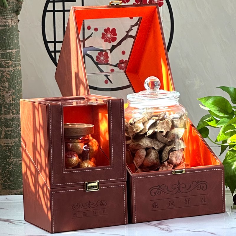 カスタマイズされた栄養ディスプレイボックス、高級レザーボックス、みかんの皮、小さな緑色のマンダリン保存瓶、包装箱、魚の皮、アミガサタケのギフトボックス
