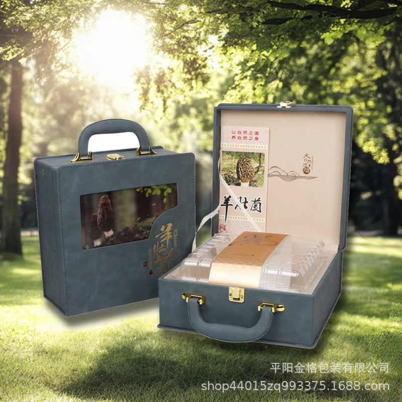新しいポータブルアミガサタケレザーボックス 200 グラム 250 グラム野生アミガサタケ乾物ギフトボックスヘルスケア製品ギフトボックス