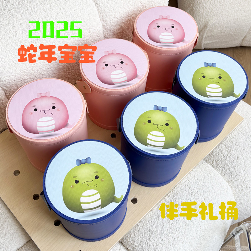 2025年蛇年ベビーギフトバケツ、ポータブルでかわいい収納バケツ、デスクトップ収納ボックス、子供の誕生日ギフトボックス