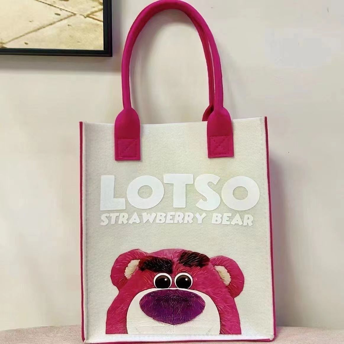 【送料無料】フェルトトートバッグコントラストプリント学生漫画誕生日コンパニオン100日バッグショッピングバッグイチゴ