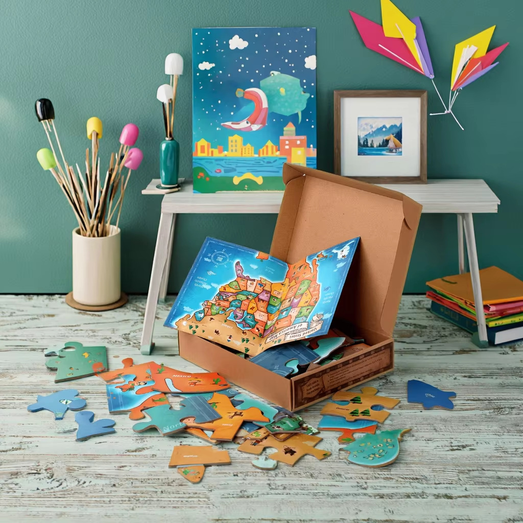 カスタマイズされた高品質で手頃な価格のかわいいパターンの子供用パズル包装箱環境に優しいリサイクル可能な段ボール航空機輸送箱