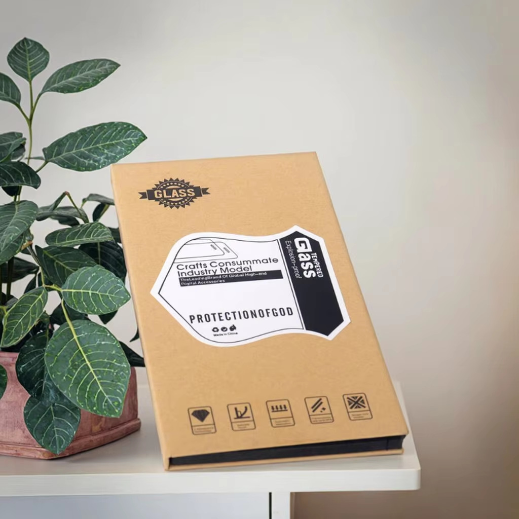 カスタムハイエンドブック型携帯電話強化ガラススクリーンプロテクターハードクラフト紙小売包装箱