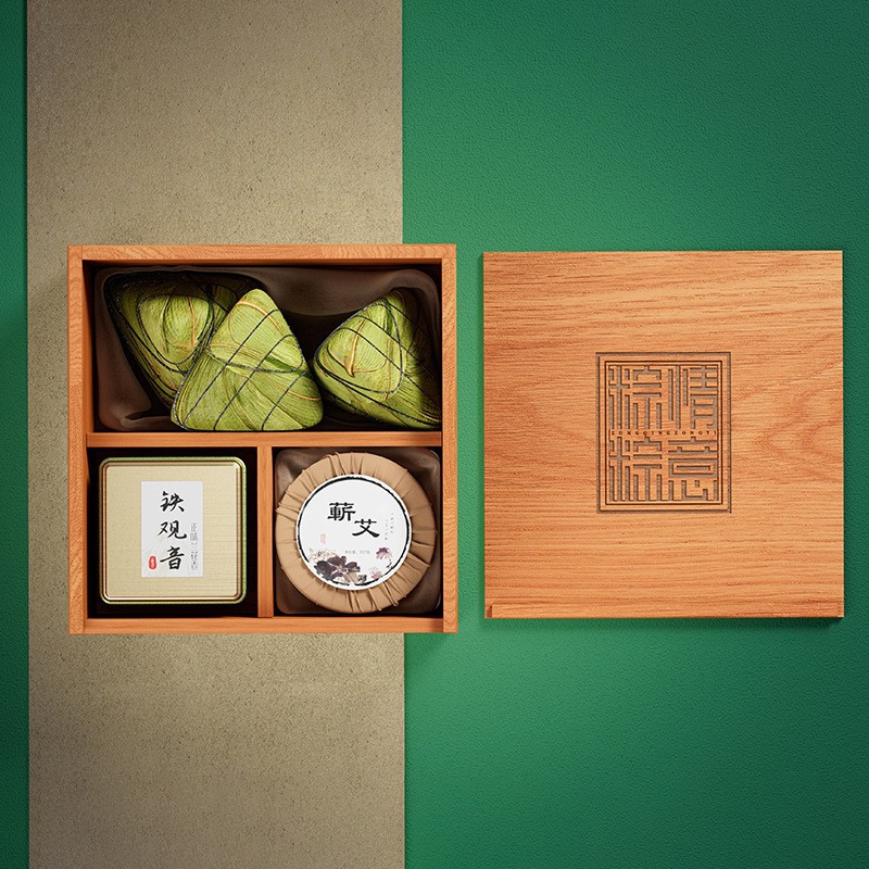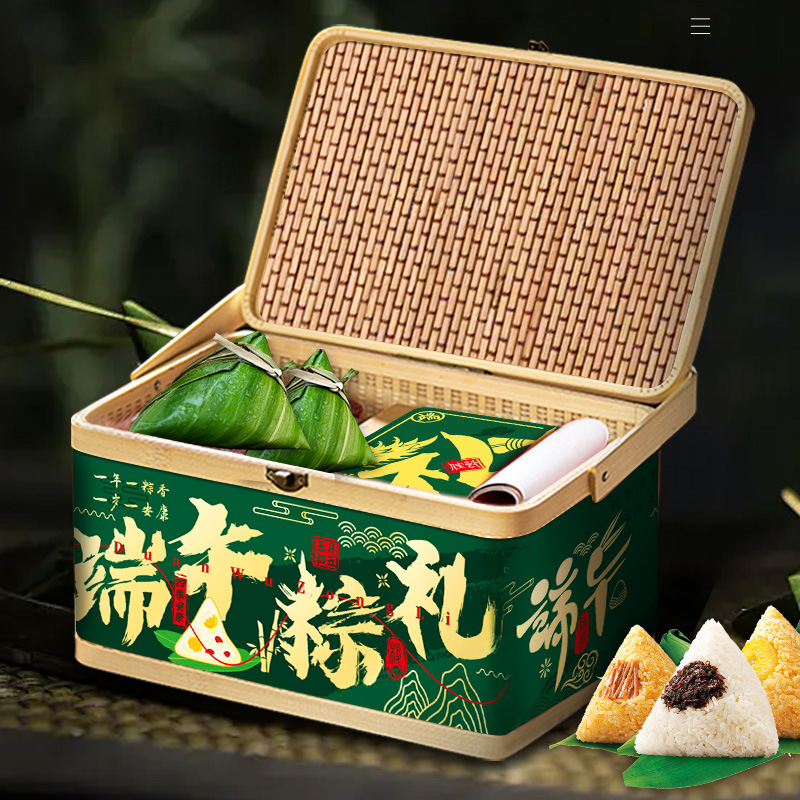 端午の節句ちまきギフトボックス創意グリーン木製ギフトボックス手提げ包装木箱会社ビジネス包装箱