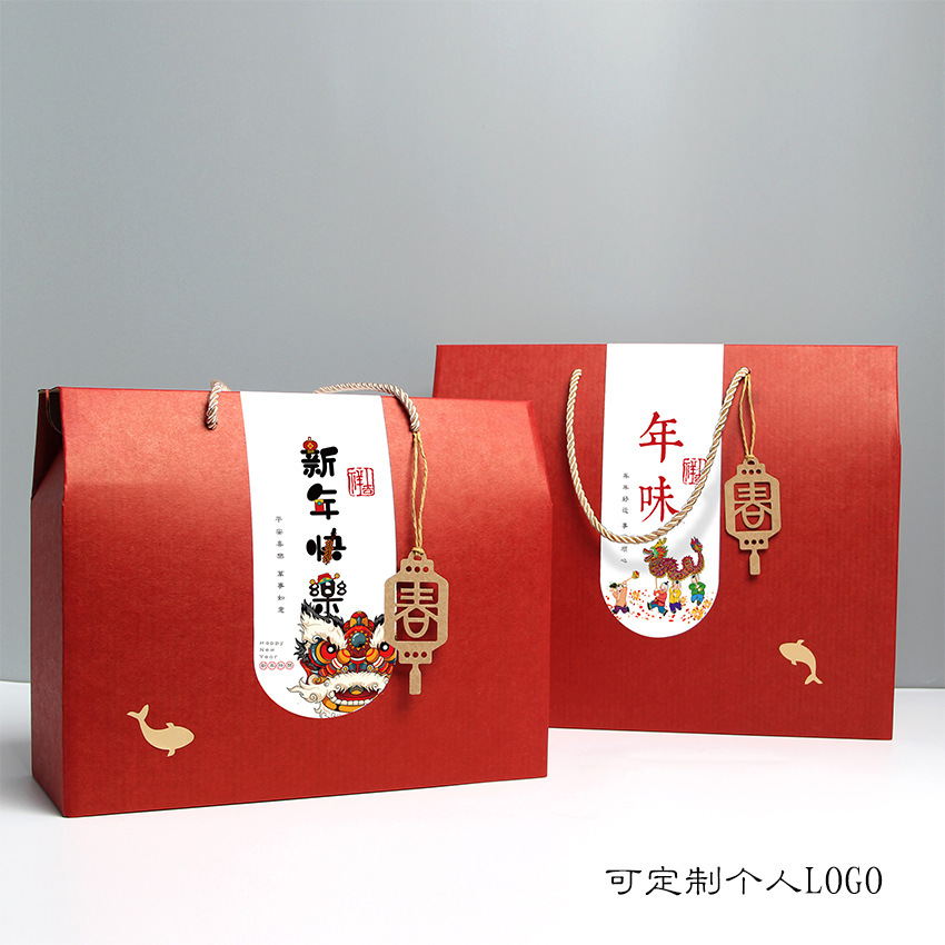 定logo新年礼箱年物包装箱赤通用手提げ紙箱果物熟食特産品干物紙箱