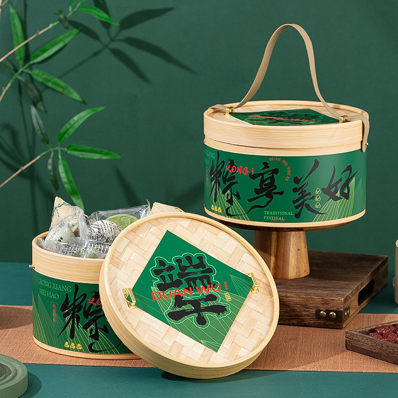 工場直販団子ギフトボックス竹編み2025端午節包装箱木製国民トレンド竹かご空箱ラウンド包装箱