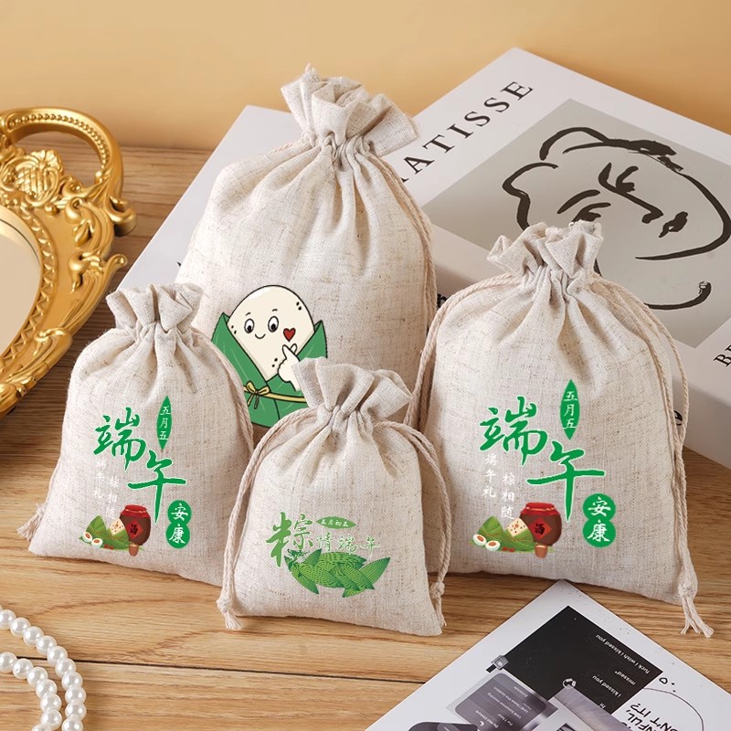 端午節原色ギフトバッグ、団子と鴨の卵の包装袋、巾着綿袋、手作り団子ギフトバッグ卸売