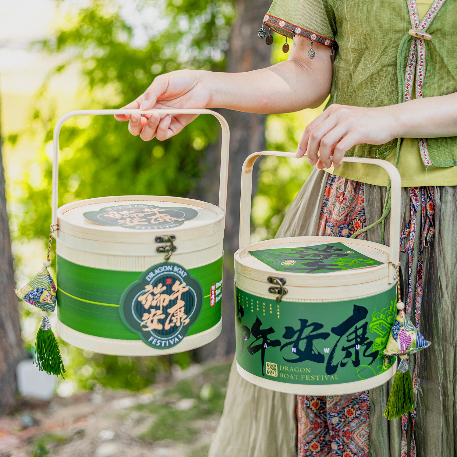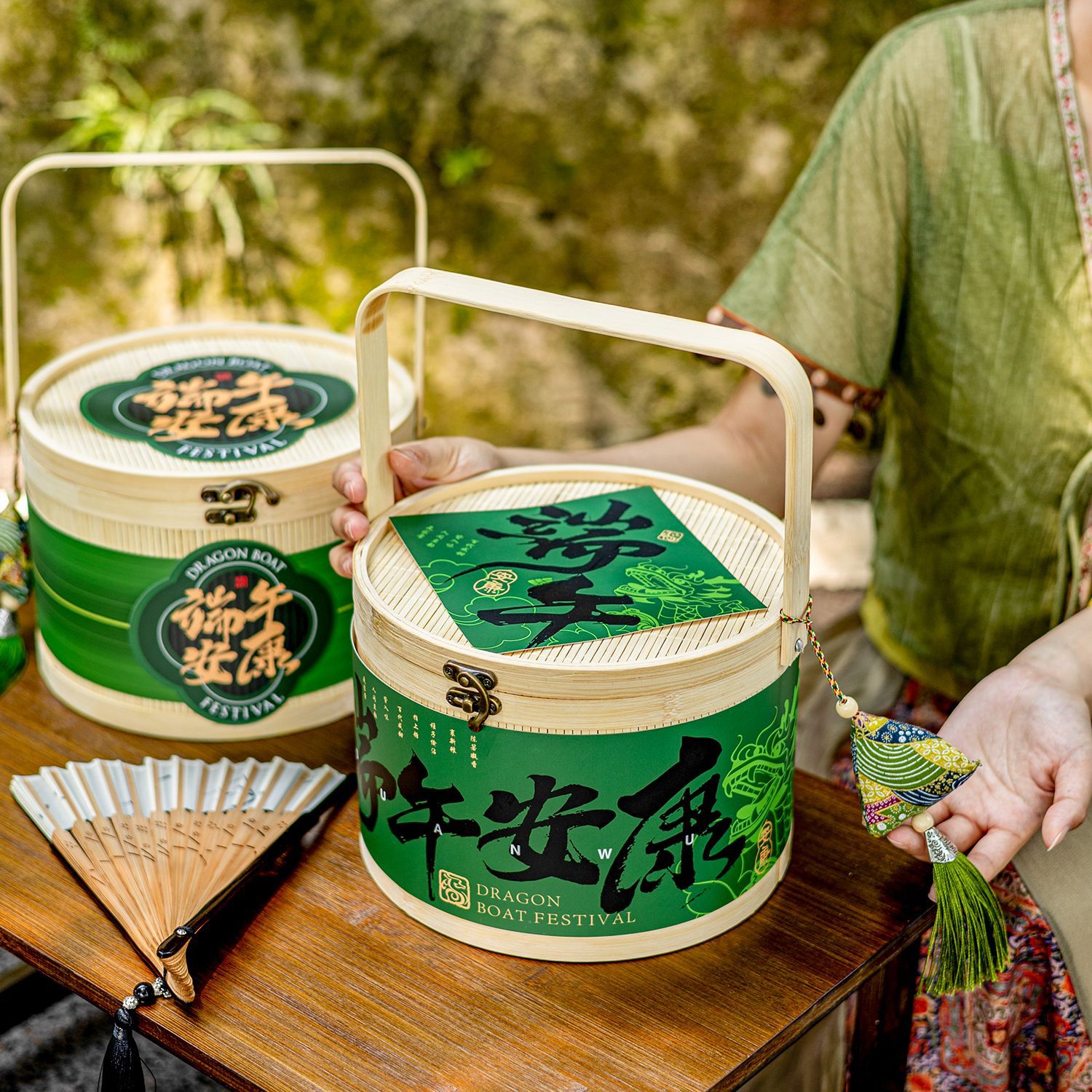 2025 端午の日ギフトボックス竹団子包装箱国民トレンドギフトボックスポータブルバスケットラウンドバスケット会社ロゴカスタマイズ