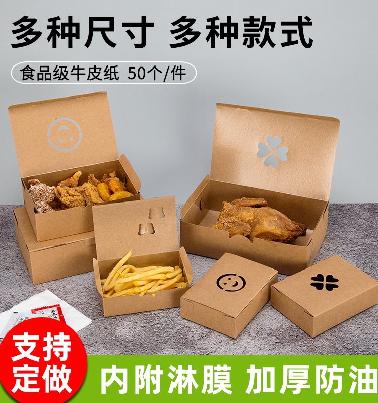 韓国風フライドチキン包装箱クラフト紙箱スナック耐油箱チキンレッグ、手羽先、チキンステーキ包装テイクアウト箱