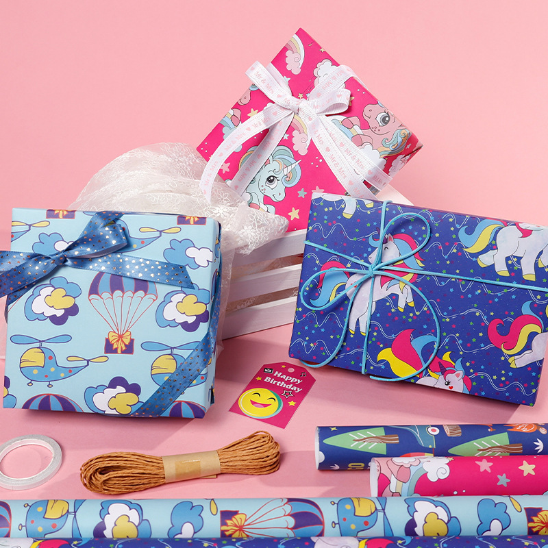 漫画の動物の誕生日ギフトユニコーンシリーズギフト包装紙子供の誕生日ギフトセット包装