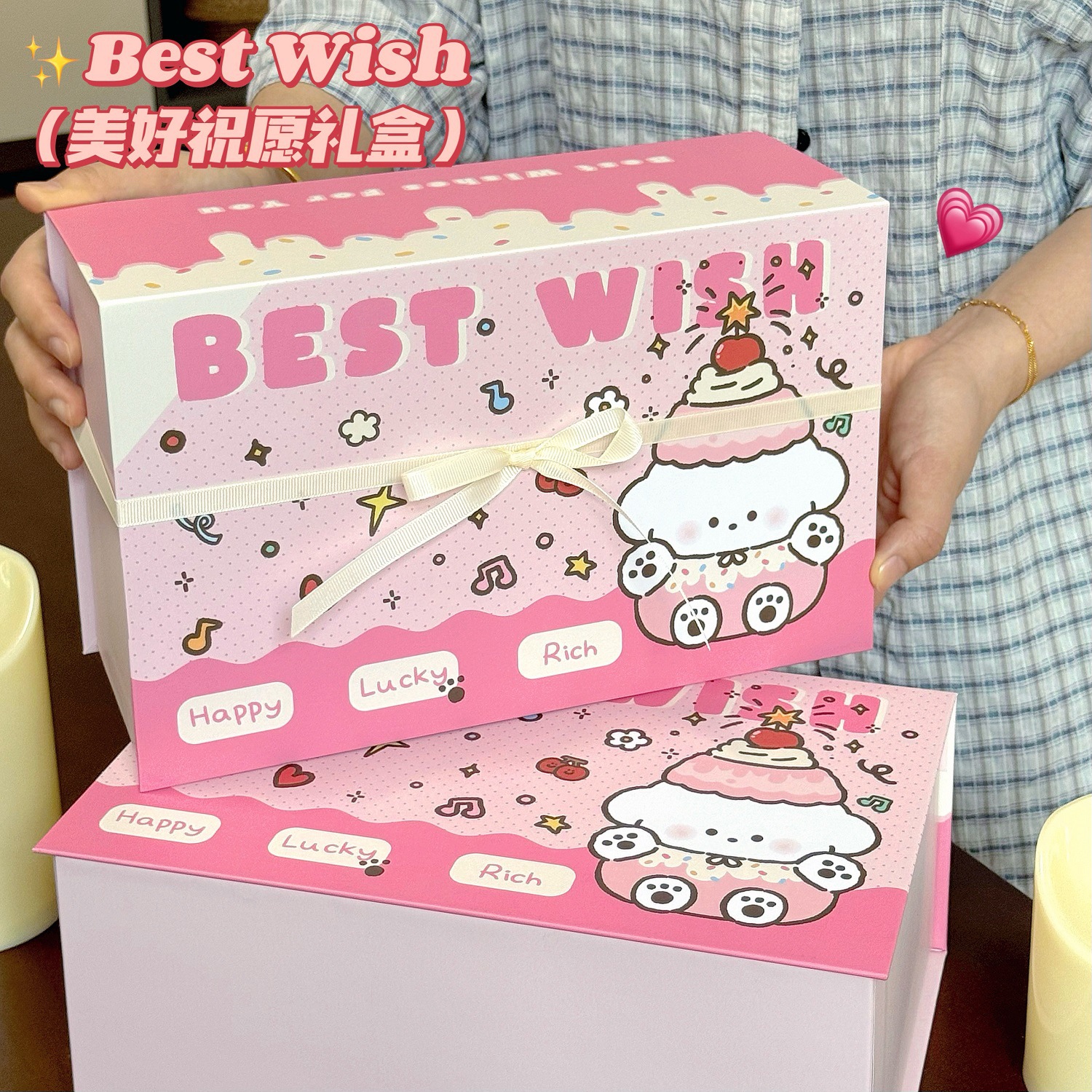 インピンクリボンギフトボックスかわいい漫画ギフト空箱誕生日ギフト包装箱女の子のためのお土産