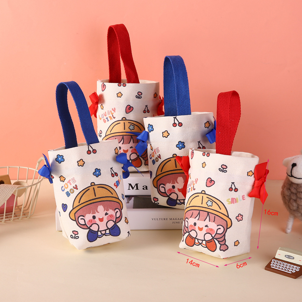 漫画の男の子と女の子のキャンバスバッグ子供の日のスナック共有バッグ誕生日ギフトハンドバッグキャンディーバッグ