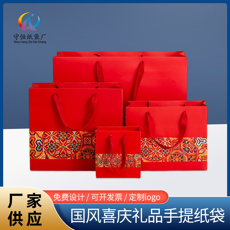 中国風ギフトバッグ赤い手提げ袋プレゼント袋紙袋レトロ民族風網赤包装