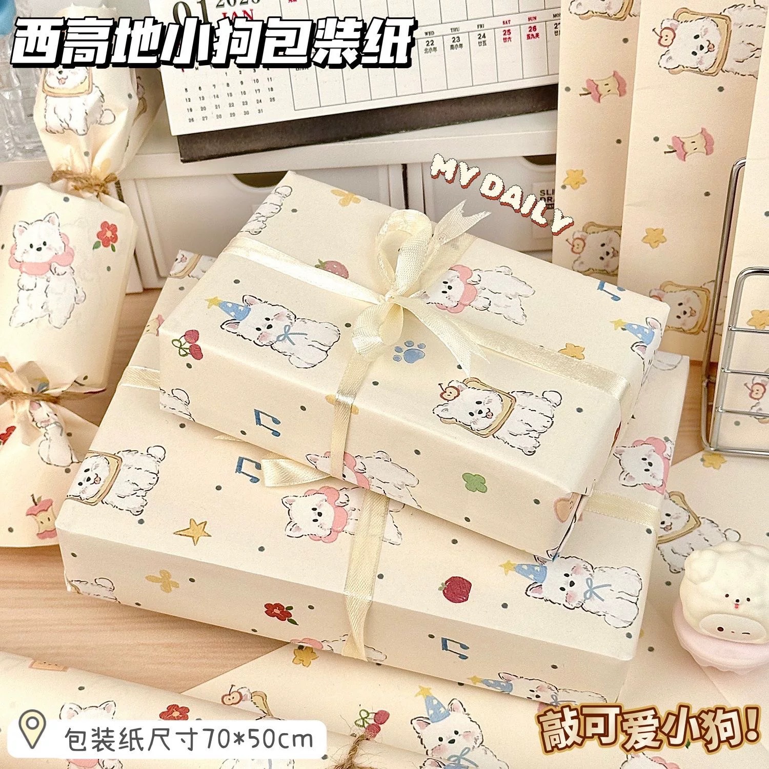新しいスタイルのウエストハイランド犬の包装紙、見栄えの良いイン、大きいサイズ、クリエイティブ、シンプル、かわいい、ミルクギフト包装