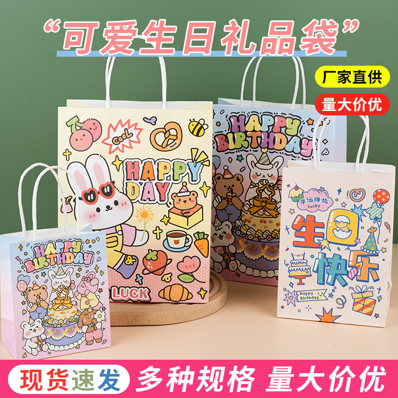 ギフトバッグ高颜値insクラフト紙袋学生の美しいプレゼント包装袋漫画かわいい手提げ袋