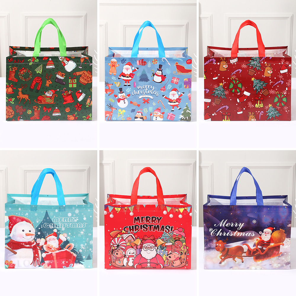 パーティープレゼントキャンディギフトバッグクリスマス手提げ袋不織布バッグ雪だるまプリント包装袋卸売り