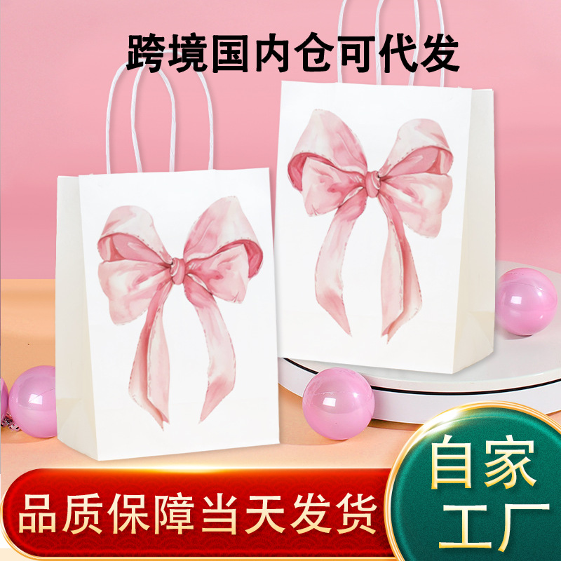 国境を越えて人気のピンクの蝶ネクタイギフトバッグ、女の子の誕生日、結婚式、感謝祭、クリスマスのギフト包装、持ち運び可能な紙袋