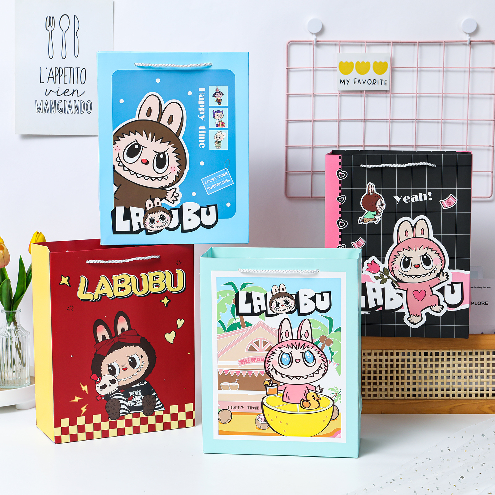 新年のギフトバッグ、新しい漫画風誕生日プレゼント包装袋、インスタ映えする高品質紙袋、ホリデーギフトバッグ