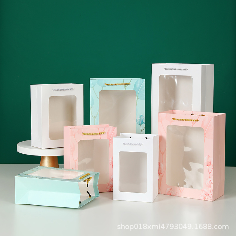 ギフトバッグ現物透明ショーウインドー手提げ袋創意プレゼント窓開け紙袋花花束包装袋手提げ袋