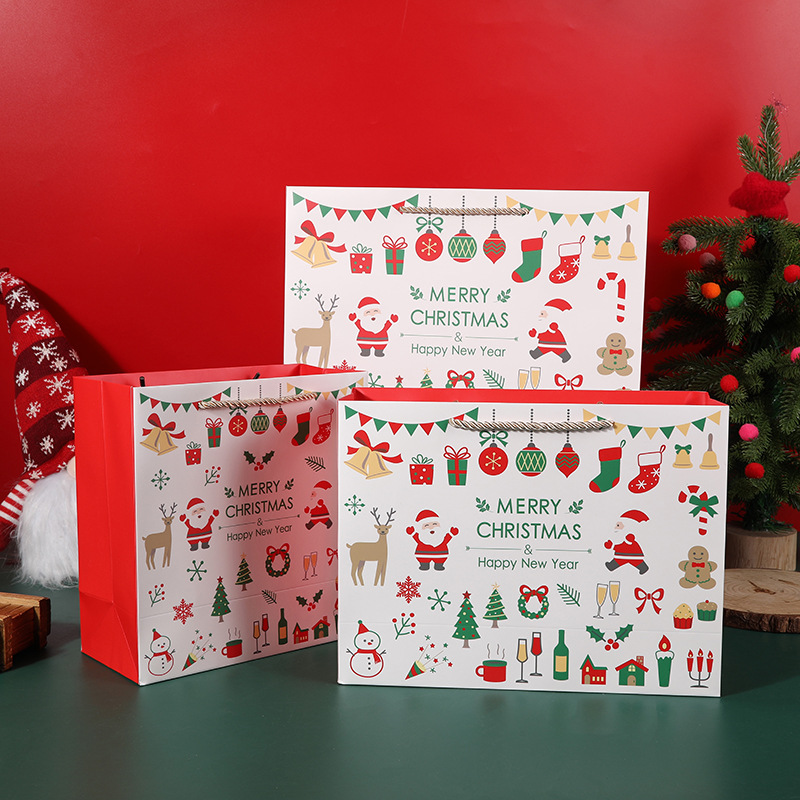 クリスマス白いボール紙紙袋ホリデーパーティーギフトクリスマスプリントギフトバッグキャンディー包装袋卸売