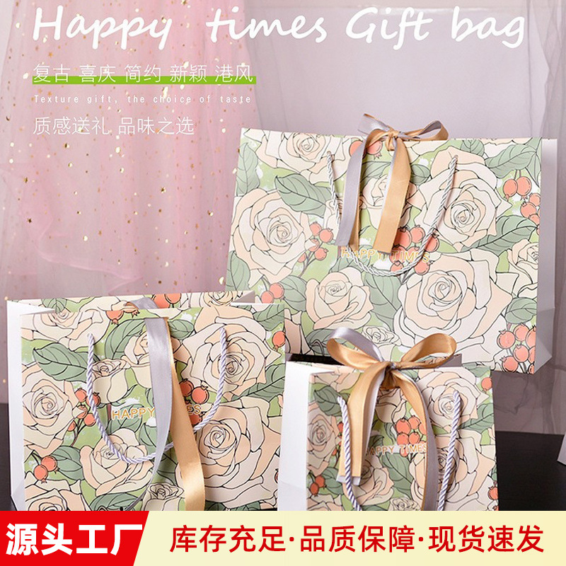 花の多い復古風の多い規格の横版の手提げ袋の服のカラー印の白いカードの厚い包装のお土産の包装の袋