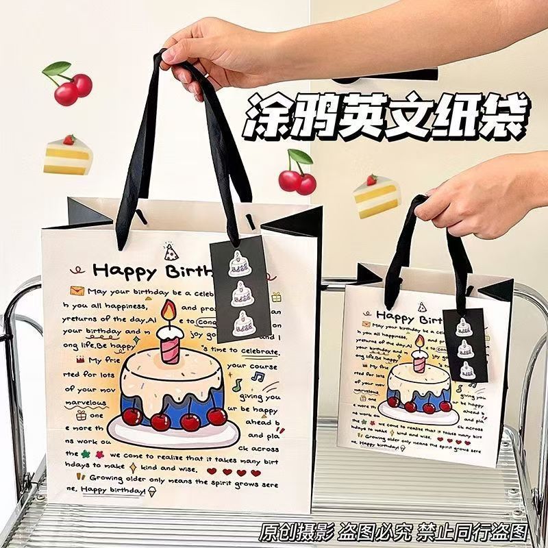 Ins誕生日ケーキカードギフトバッグ大サイズプレゼント包装袋手提げ紙袋厚手白カード収納袋