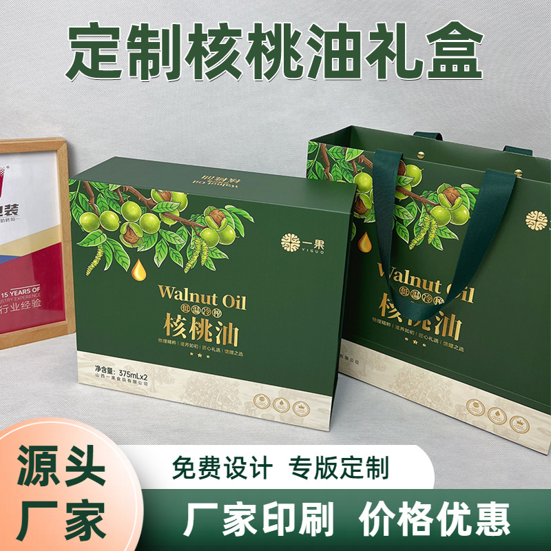 クルミオイル包装箱カスタムシングルおよびダブルごま油オリーブオイルフリップトップギフトボックスデザイン印刷専門包装