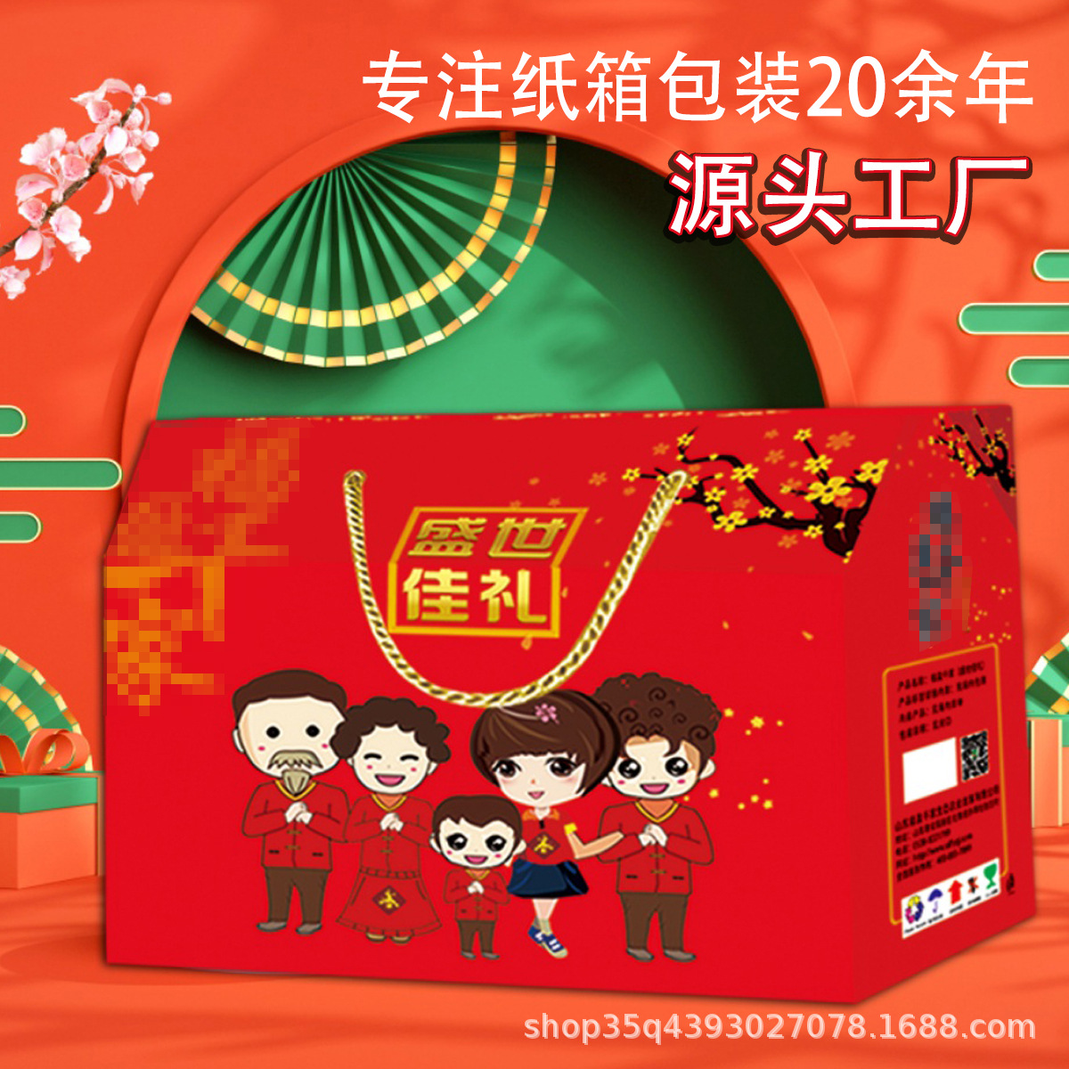 お正月用品果物ギフトボックスお正月プレゼントお祝い赤いギフトボックス厚い段ボールリンゴオレンジ共通ギフトボックス
