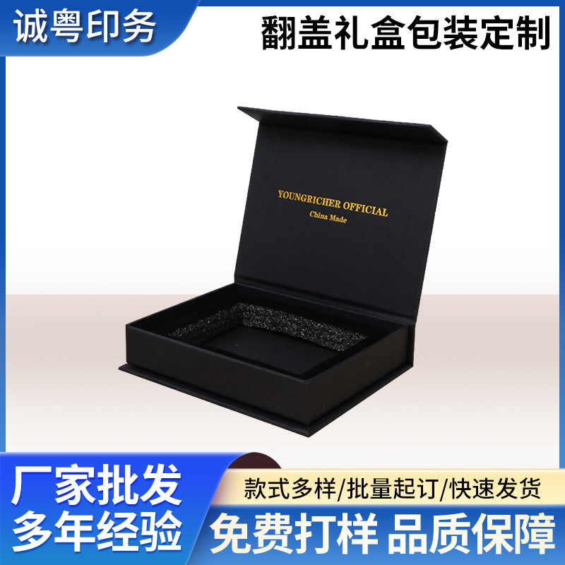 フリップカバーのギフトボックスは白黒の折りたたみの硬い紙箱の磁気ステッカーの磁気は本式のギフトボックスを印刷して無料でサンプルを作ります。