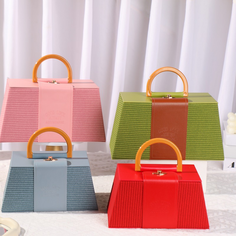 新しい台形の手提げ皮质の喜糖の箱の结婚の伴手のギフトボックスのふたをひっくり返します式のプレゼントの包装箱の化粧箱のギフトボックス