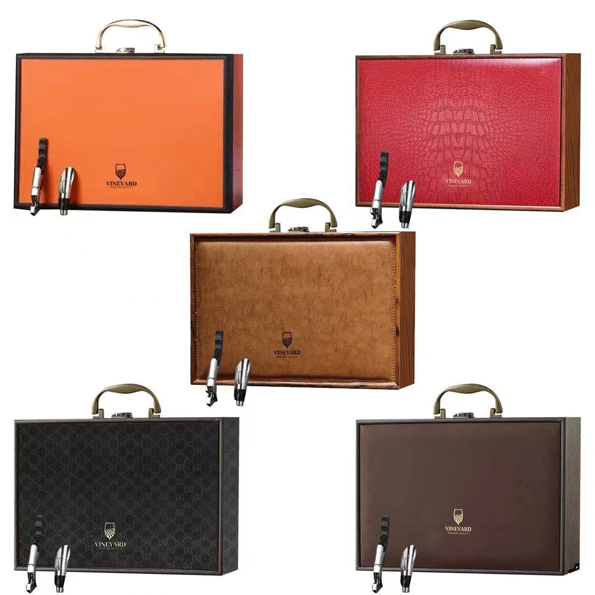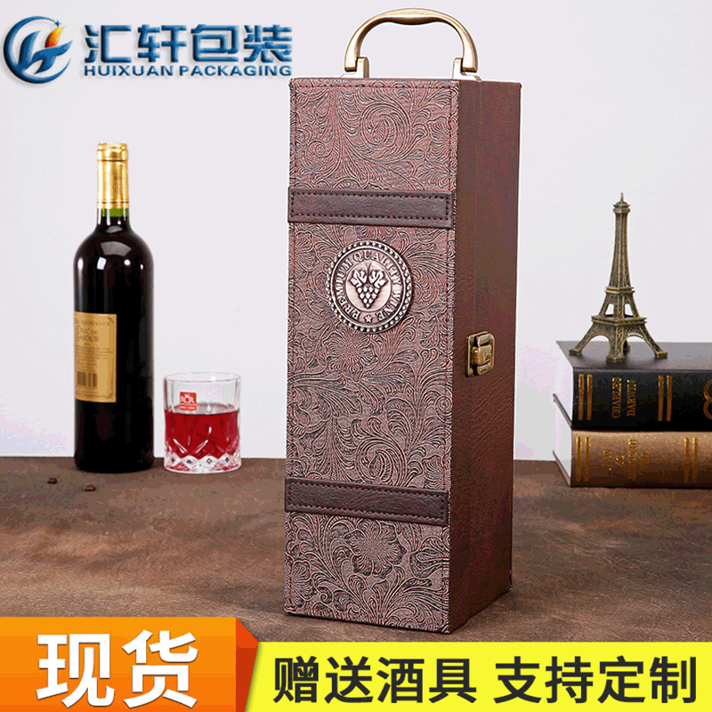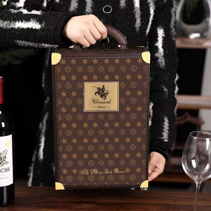 単品在庫あり 赤ワイン用携帯包装箱 ワインギフトボックス 木製PUレザー製携帯赤ワインボックス包装箱