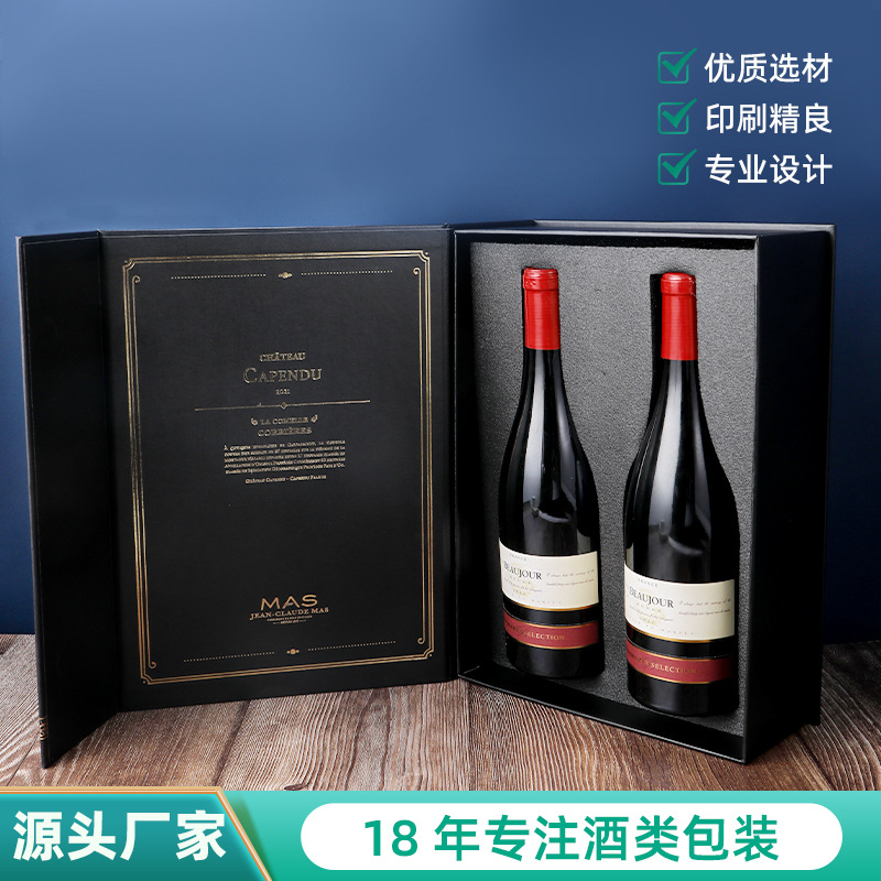 メーカー卸売りワイン紙包装箱二本入ワインギフトボックス高級ワイン本型ギフトボックス