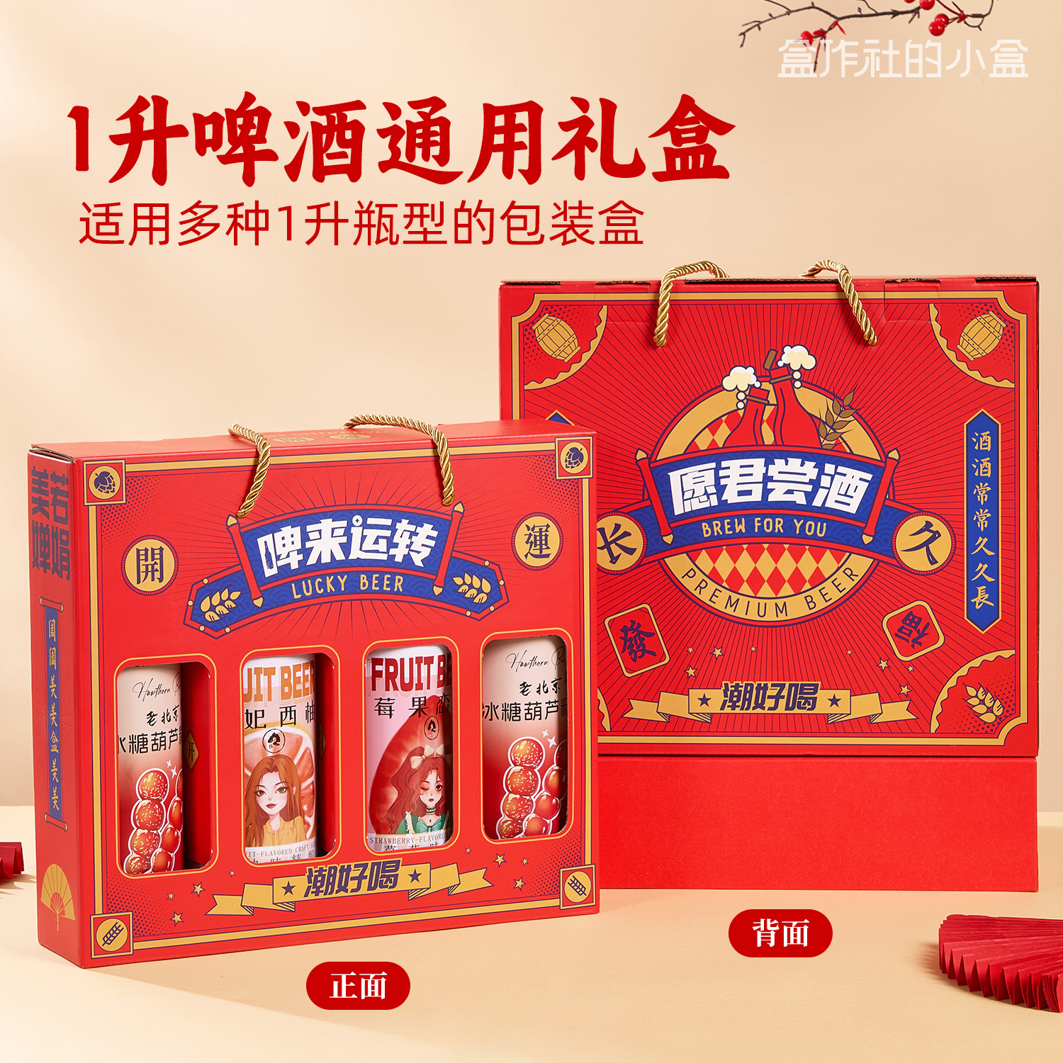 現貨ビール紙箱4本入り1リットルホリデーギフトボックスブリキプラスチックボトルハンドバッグ型自作クラフトビール包装