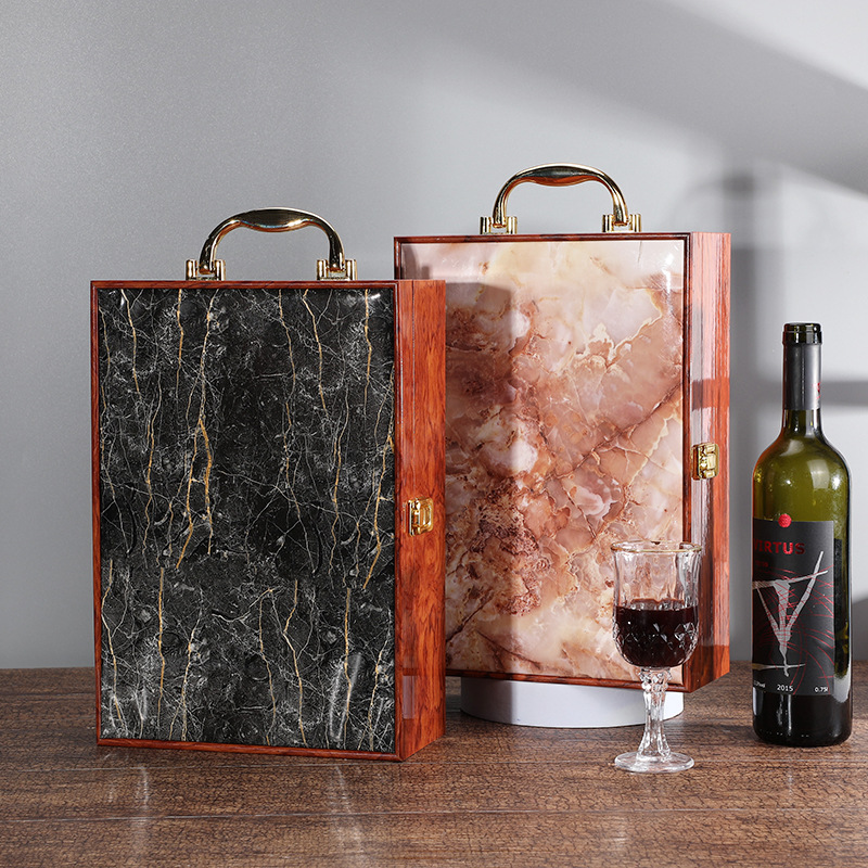 ヨーロッパ式の軽い豪華な大理石のワインの包装箱のアイデアは携帯用の2本のワインの包装の贈り物の箱を持ちます。