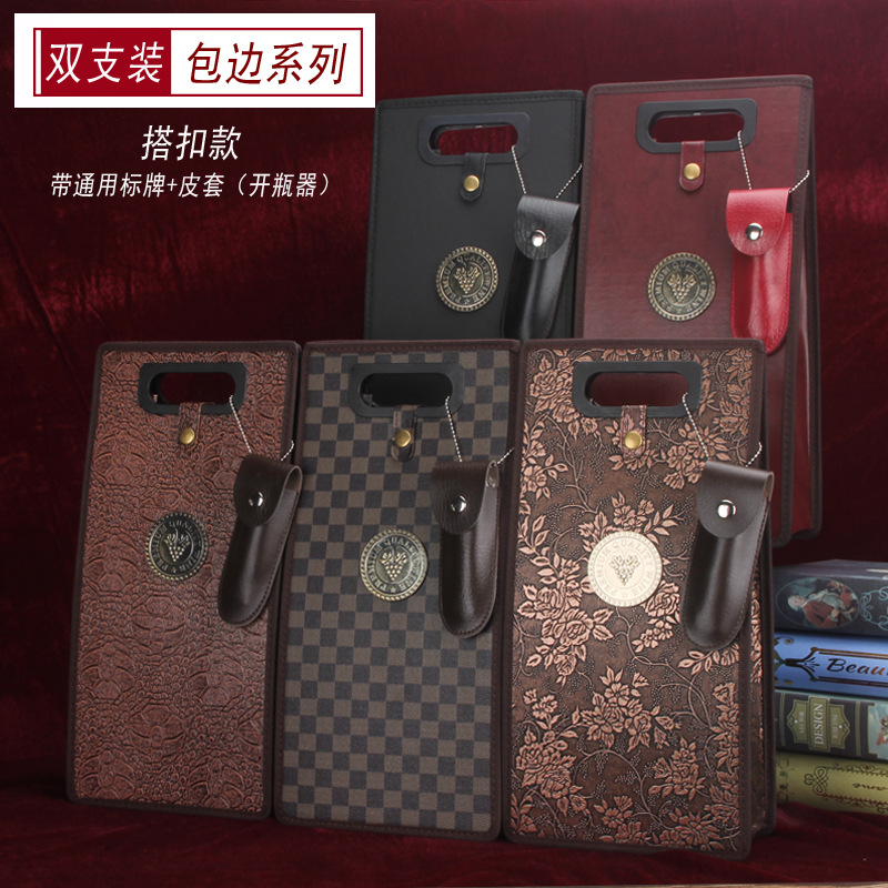 メーカー卸売り創意ダブルサポートpu皮ワイン包装ギフトボックスワイン手提げギフトボックスはロゴを印刷できます。