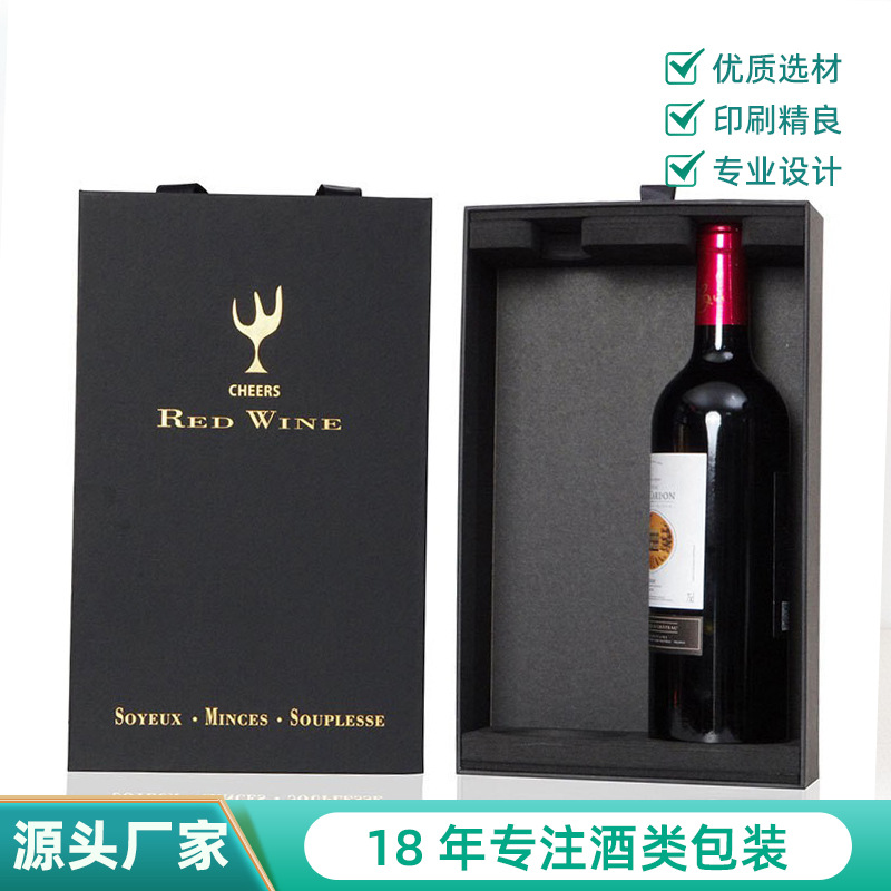ハイエンド2本入ワイン折りたたみギフトボックス卸売ワインクロスボーダー手提げギフトボックス黒色包装ボックス現物