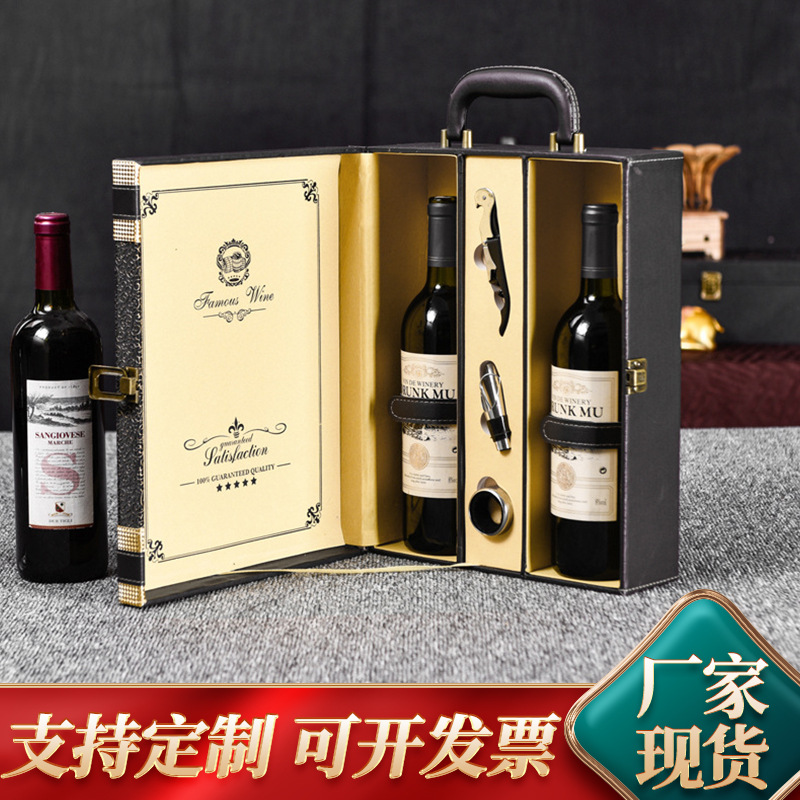 スポット卸売赤ワイン包装ギフトボックス、ダブル赤ワインレザーボックス、ワイン包装、赤ワインギフトボックス包装箱