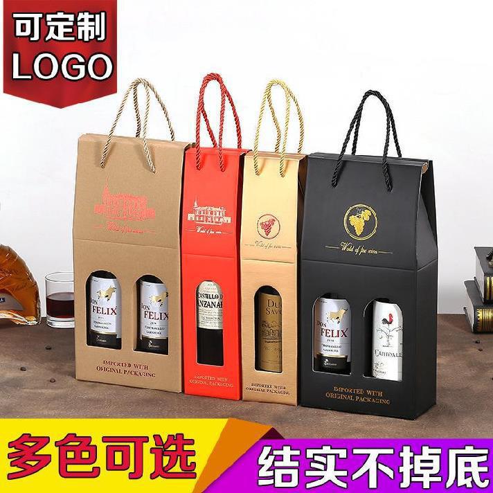 赤ワインギフトボックス、2本入り赤ワイン包装箱、ワインボックス、持ち運び可能な赤ワインギフトボックス、卸売販売